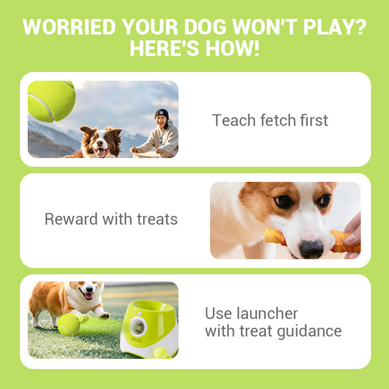 AYUDA DE ENTRENAMIENTO INTERACTIVA: Ideal para el entrenamiento basado en recompensas. Anime a los perros a buscar y devolver pelotas, y luego guíelos con golosinas para que utilicen el lanzador por sí mismos.