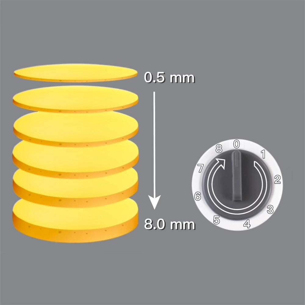 [Multifuncional] Las cuchillas permiten flexibilidad para cortar, rebanar, triturar, picar fácilmente frutas y verduras en diferentes formas y tamaños. Como una patata, puedes hacerla en rodajas normales o en zigzag, tiras o triturarla fácilmente.