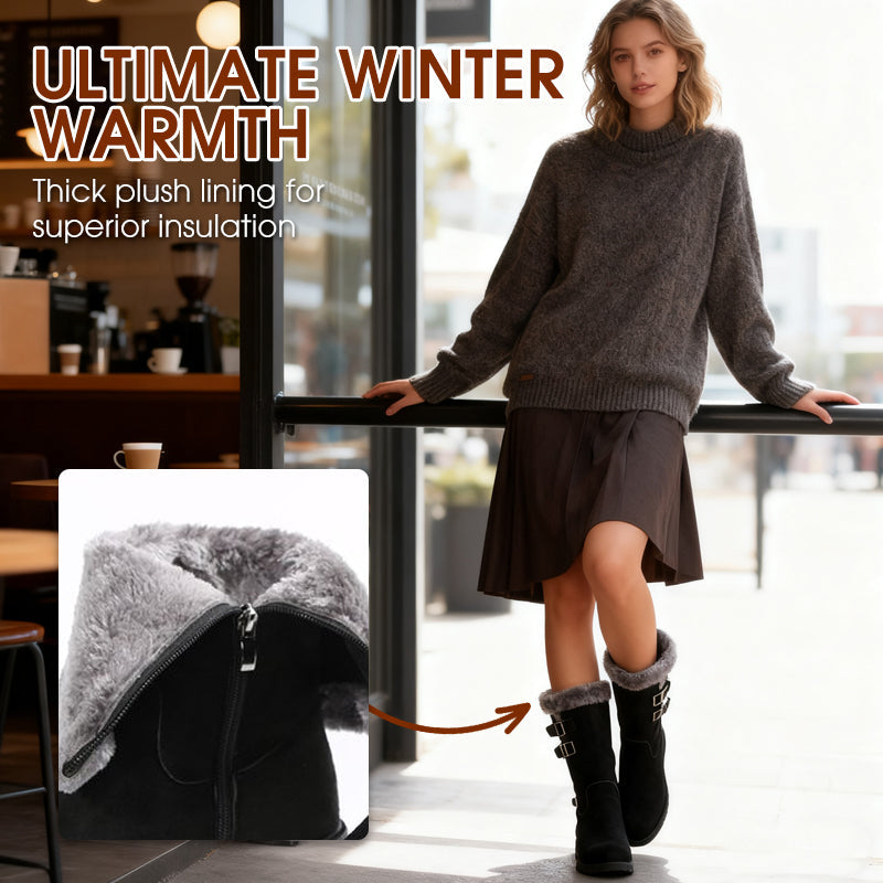 DISEÑO ELEGANTE Y VERSÁTIL : Complementa sin esfuerzo tu vestuario de invierno. Su silueta clásica, junto con un elegante detalle de doble hebilla, hace que estas botas combinen a la perfección con jeans, leggings o faldas para cualquier ocasión informal.